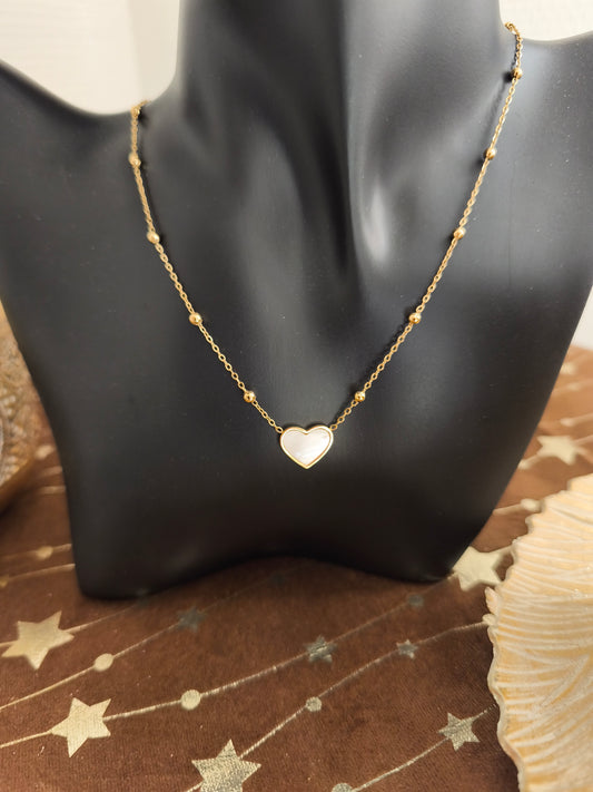 Collier Coeur Blanc Nacré